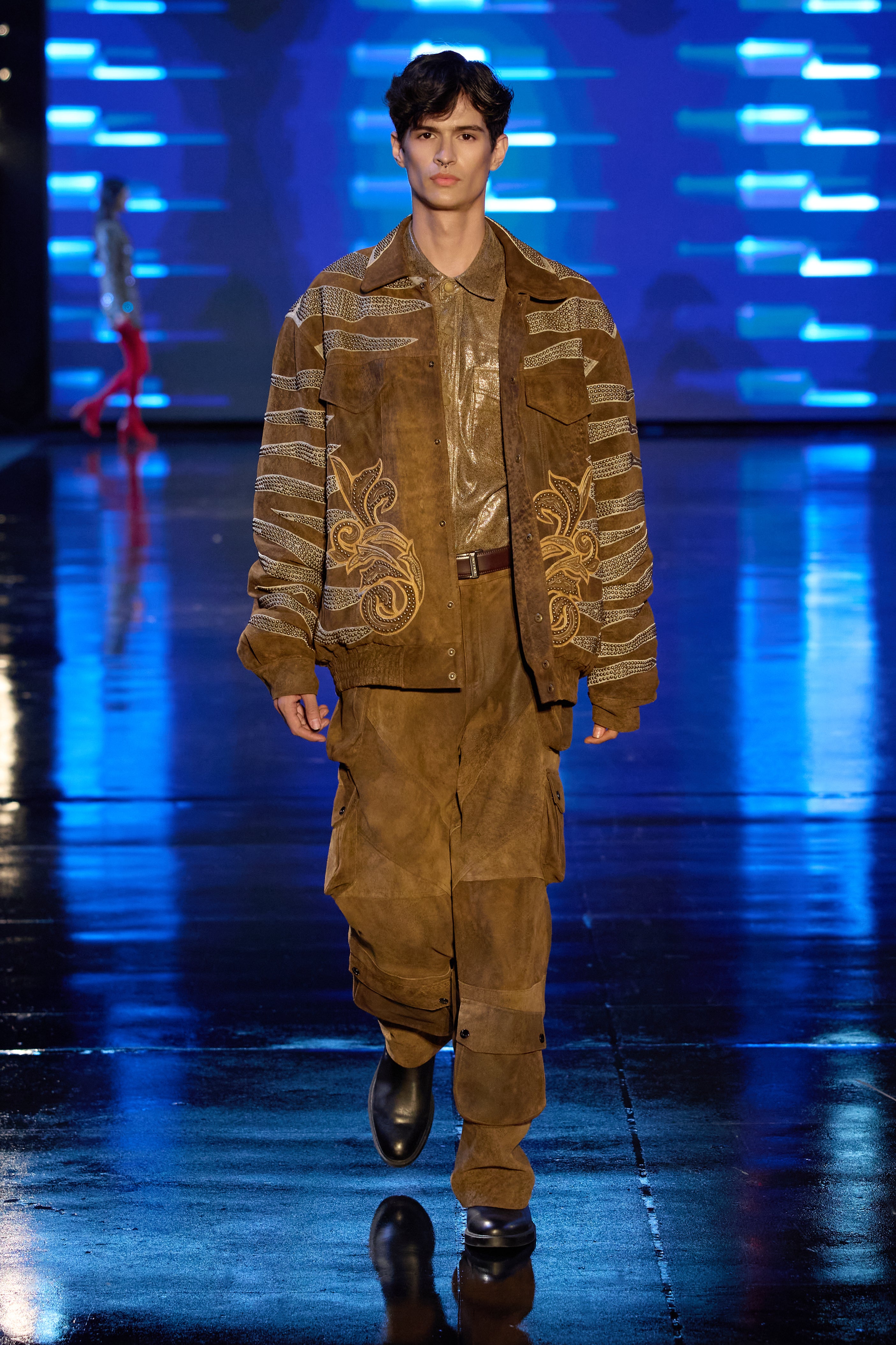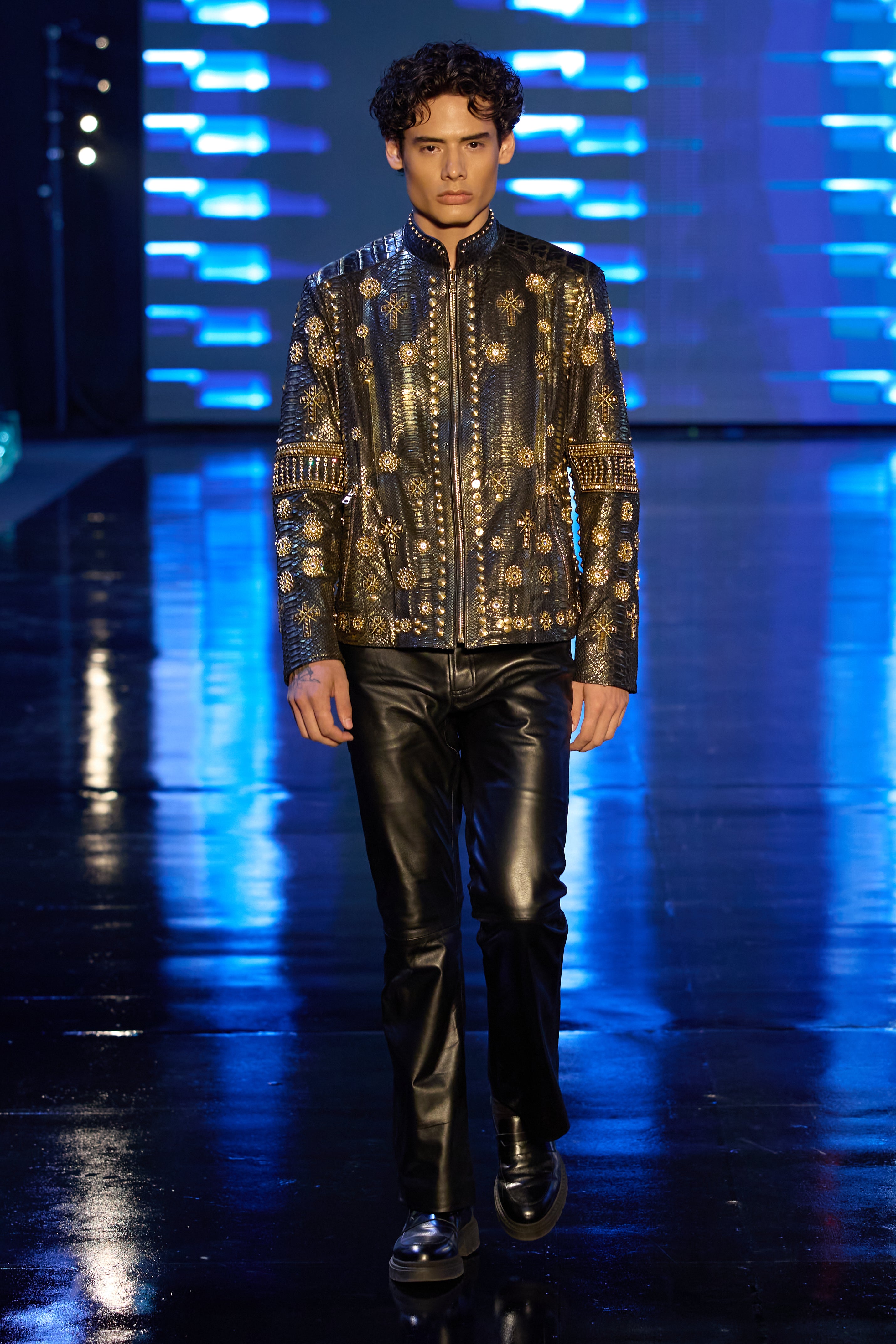 Chaqueta de piel de caimán con cuello de marta cibelina